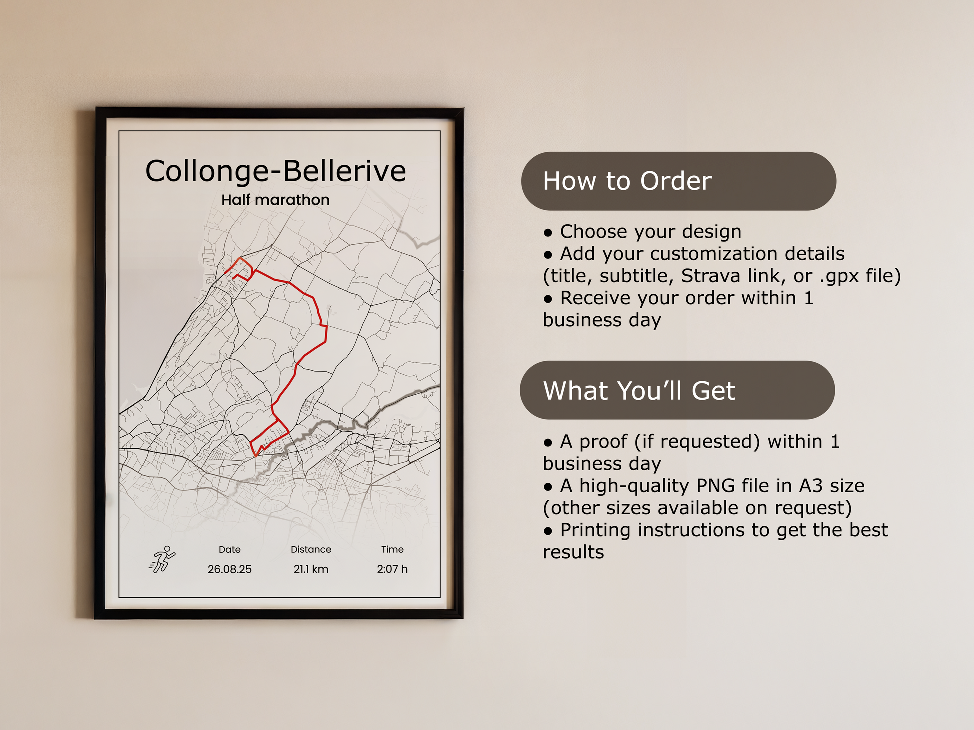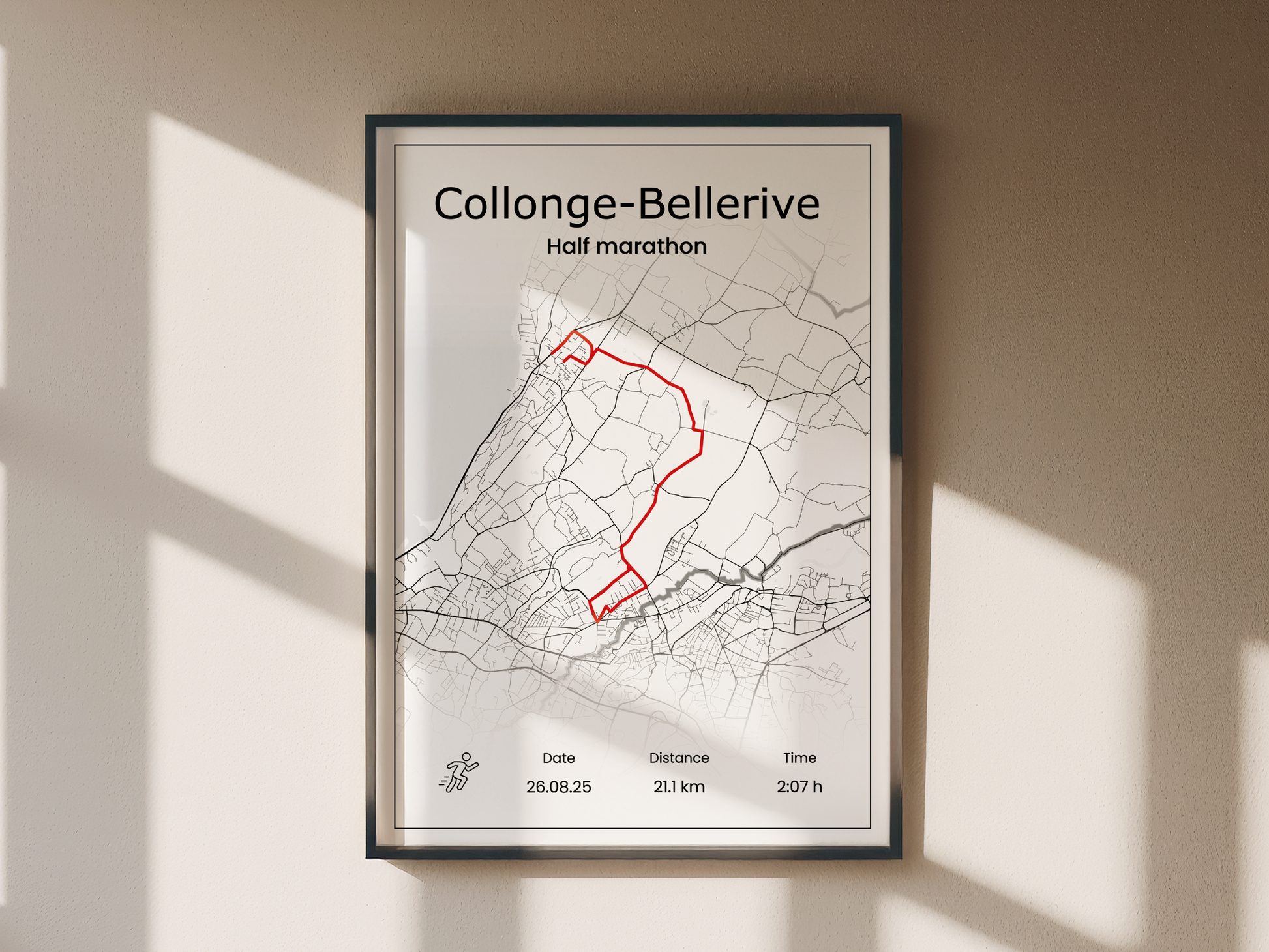 Vintage offers a classic black-and-white running map accented by a bright red line that clearly marks your route. Designed to help you easily follow and reflect on your running journey, it provides a simple and encouraging way to visualize every step of your adventure. Perfect for runners who appreciate clarity and inspiration on every path.